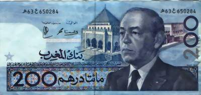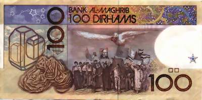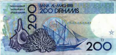 Geldscheine sind in den Werten 10 Dirham, 20 Dirham, 50 Dirham, 100 Dirham und 200 Dirham erhältlich.